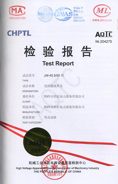 交流接地開關(guān)檢驗報告